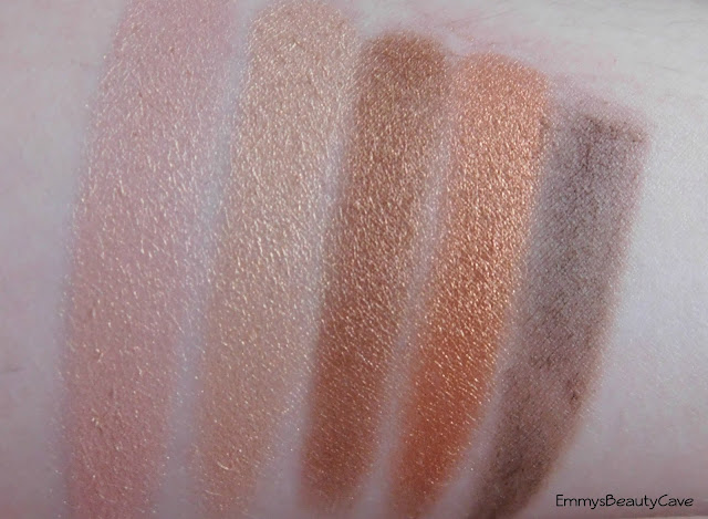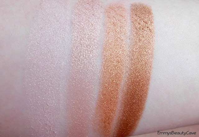 The first three highlight shades (L-R) i will definitely use as a highlight but the last shade is too dark for my pale skin so i will get alot of use out of it as an eyeshadow shade. I do love the range of highlight shades and can see myself using them alot. The shadows are definitely warm tones which is me down to a tea. It is barely ever i wear cool tones as they just don’t suit me. 90% of the time i will have some sort of gold/bronze eye. I will be using this palette until there is literally nothing left!