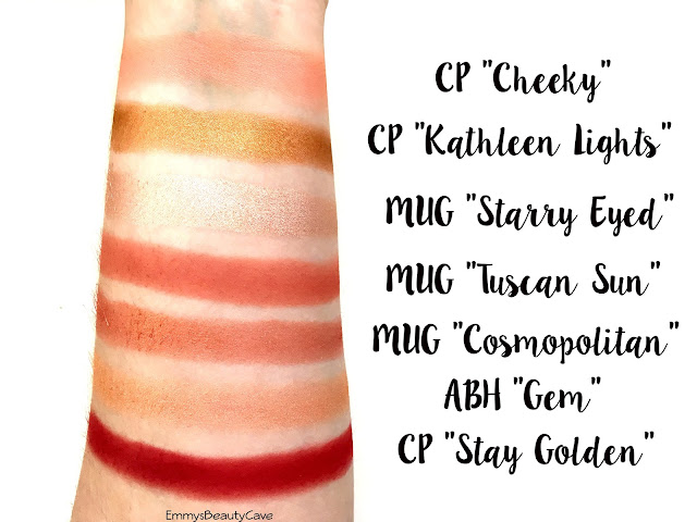 The shades Cheeky and Kathleen Lights are a must. Cheeky is a pink with a satin finish and Kathleen Lights is your typical intense gold. Both look stunning.