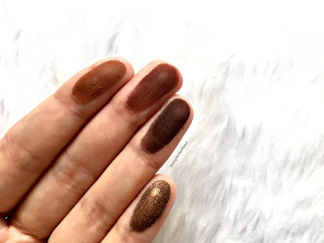 As you can see the eyeshadows are very pigmented. I was impressed as there isn’t a major amount of fallout, the usually amount you get with any eyeshadows. When I have been testing them out of course I have my favourtie shades which are:
