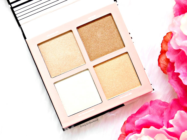 The quad contains four different highlighters from an icey white, champagne pink, gold and a bronze. Im quite pale and I can wear 3 of these and the bronze shade I use an eyeshadow. The size of each pan is incredible which makes this palette an absolute bargain. The packaging is simple in a sturdy cardboard flip lid palette. It is definitely travel friendly.